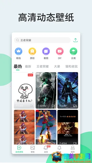 嗨壁纸资源超丰富,涵盖明星、风景、动漫等各类主题,海量高清壁纸随意挑。操作超便捷,一键设置轻松搞定。每日更新海量新资源,天天都有新感觉。分类浏览超方便,快速定位喜爱类型。搜索功能超强大,精准查找特定壁纸。还能制作个性动态壁纸,上传分享独特创意。无论是静态还是动态,嗨壁纸都能满足你,让手机瞬间个性十足,快来体验吧!
