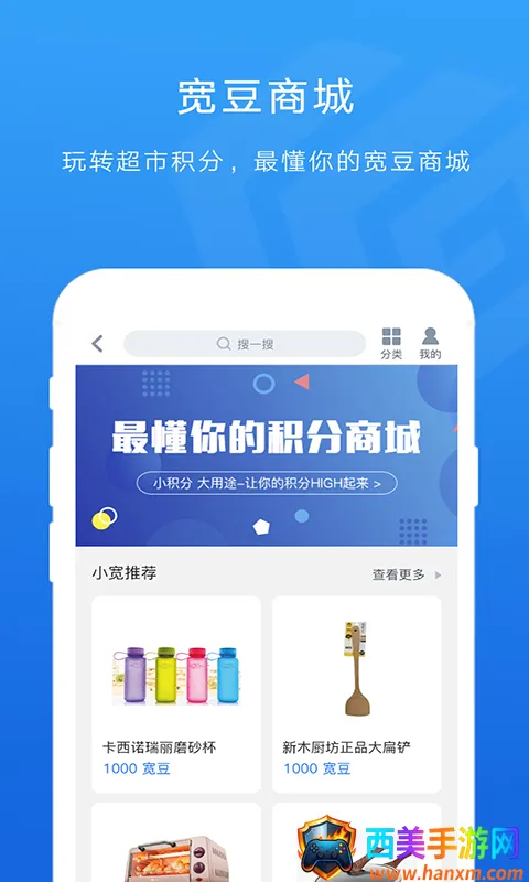 2、购物积分能兑礼:消费积累积分,可在宽豆商城换日用品、食品等,不足补现,积分不闲置。