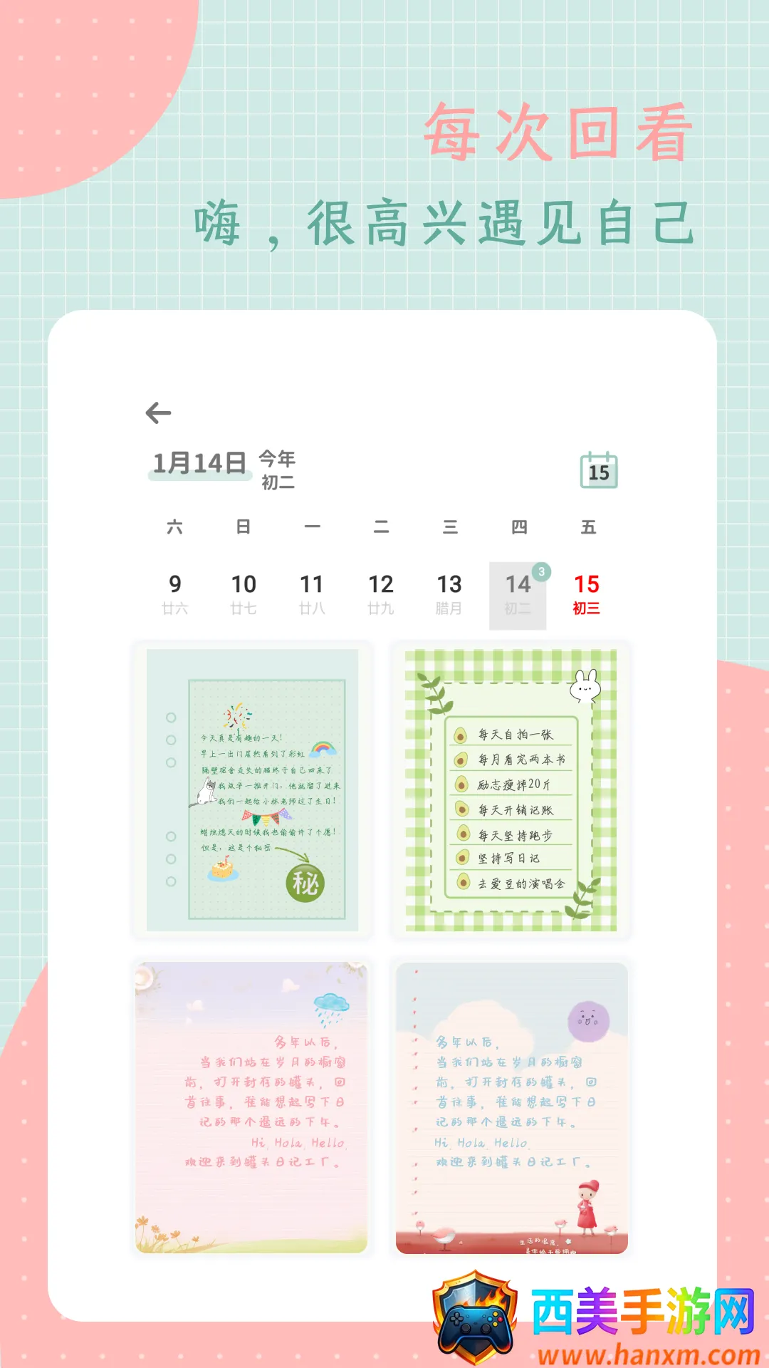 多样的字体背景:支持多种字体样式,如快乐体、手写体、黄油体等,还有多种日记背景,信纸风格、少女风格、简约风格、质感纹理风格随心选择,能让你像写明信片一样写日记,重拾纸笔书写日记的快乐体验。