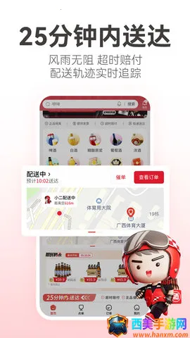 2. 闪电送达:覆盖多城市站点,全城下单25分钟内免费送达。