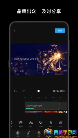 2. 功能丰富,有丰富的滤镜、音乐、水印、贴纸可供选择,还能进行精细的画质调节,包括亮度、饱和度等参数调整,让视频更独特、照片更出色。