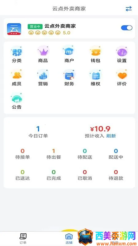 云点商家版为校园外卖商家提供便利。它支持随时随地管理店铺,设定运营时间,开关店铺轻松自如。能实时接收外卖订单并处理,还可管理商品,上下架商品、添加管理商品都很便捷,库存管理也不在话下。会员数据统计全面,会员余额充值管理轻松搞定。一站式管理高效便捷,同步后台功能强大,内置打印机方便小票打印,实时接单迅速,助力商家轻松运营,全面统计会员数据,可视化查看一目了然。有了它,商家能更好地管理店铺,实现高效运营,订单处理和收入结算都更顺畅。