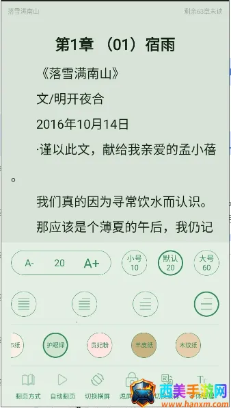 2、支持个性化阅读界面设置,用户可调节字体大小、背景颜色及翻页效果等参数。