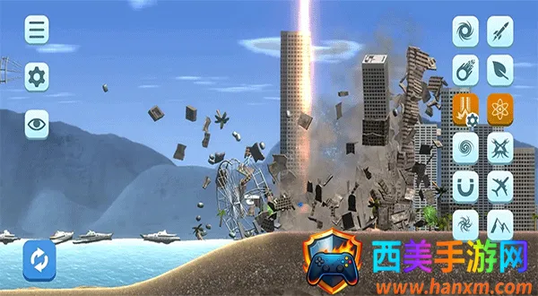 1、极致真实的物理破坏反馈:建筑倒塌遵循力学结构,玻璃碎裂、钢筋扭曲细节逼真。核弹引爆后的冲击波会连环摧毁片区,地震裂缝沿地质结构蔓延。每次破坏都有独特演算结果,非预设动画重复,视觉震撼力与随机性并重。