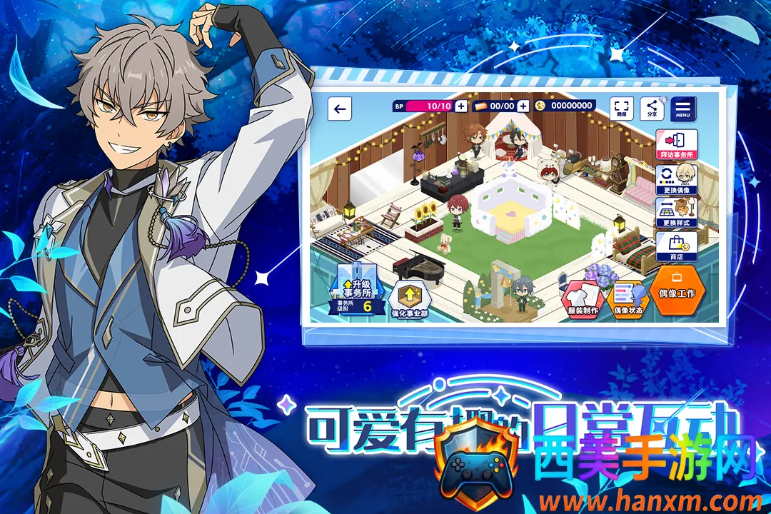 4、定制专属日常:可在偶像事务所布置家具,打造专属家园,有丰富主题套装和特殊家具配套行为,如海滩吃刨冰、卧室熟睡等,精致动作细节仿佛置身偶像生活。