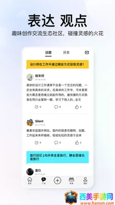 这是个轻松有趣的创作者交流社区,可与优秀创作者交流经验和观点,参与话题讨论,激发全新创作灵感。