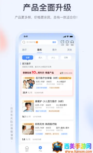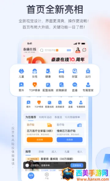 多维度普惠产品:泰康在线整合线上线下优质资源,提供养老、医疗、理财等多维度普惠型保险产品与服务,满足不同人群保障需求。