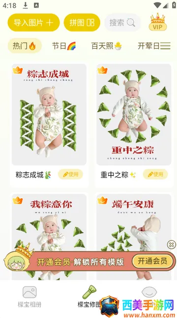 2、创意修图超快速:内置儿童专属修图工具与创意萌娃模板,一键套用即可快速出片,轻松打造独特的宝宝照片。