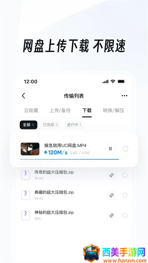 UC网盘是一款备受关注的云存储工具。它依托成熟稳定的U3内核技术,覆盖Android、iOS、Windows Phone等主流系统,真正实现手机电脑多端协同。用户可以将手机相册、聊天记录、文档资料一键备份至云端,加密存储,隐私可控,随时随地安全访问。同时,UC网盘还提供了云加速、云安全、云开放、云同步、云下载等特色功能,让用户享受更高效、更便捷的云存储服务。此外,UC网盘还提供了丰富的会员活动,用户可以通过参与活动获得免费的空间和会员权益。总的来说,UC网盘是一款功能强大、安全可靠、使用便捷的云存储工具,值得广大用户使用。