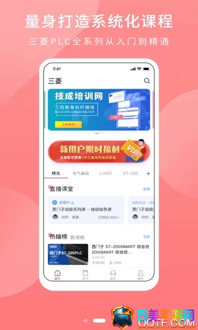 PLC学吧是技成培训网旗下三菱系列APP,专为电气自动化从业者研发。提供在线学习、作业笔记等功能,有系统化课程,涵盖三菱PLC全系列。能智能定制学习计划,免费开放资源,助学员从入门到精通,提升职业竞争力。