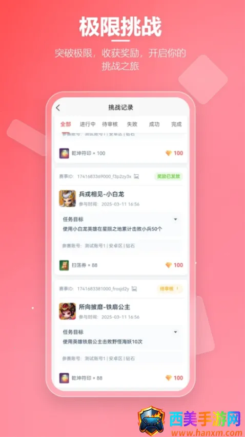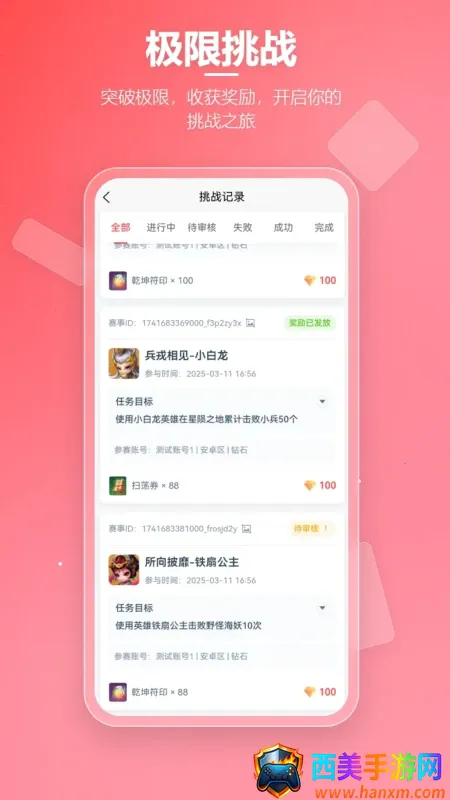 先锋营地优势显著。挑战任务每日零点全库更新,支持按游戏难度奖励多维筛选,新目标随手可得。挑战记录全程云端同步,胜率连击用时等关键指标随时可查,进步轨迹一目了然。任务收藏方便,心仪任务一键收藏并自定义提醒,合理安排游戏日程,高价值挑战不再错过。其一站式闭环服务,全流程在线完成,减少跨平台沟通成本。覆盖广门槛低,兼容多款主流游戏。公平可信,杜绝作弊与误判。奖励多样,还有社区助攻,助力玩家成长。
