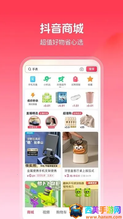 抖音商城是抖音旗下的电商购物平台,商品丰富,涵盖数码、美妆等。支持抖音账号登录,搜索便捷,有低价好物、活动优惠。还能分享商品,合并付款,实时跟踪物流,社区互动,让购物更省心、有趣。