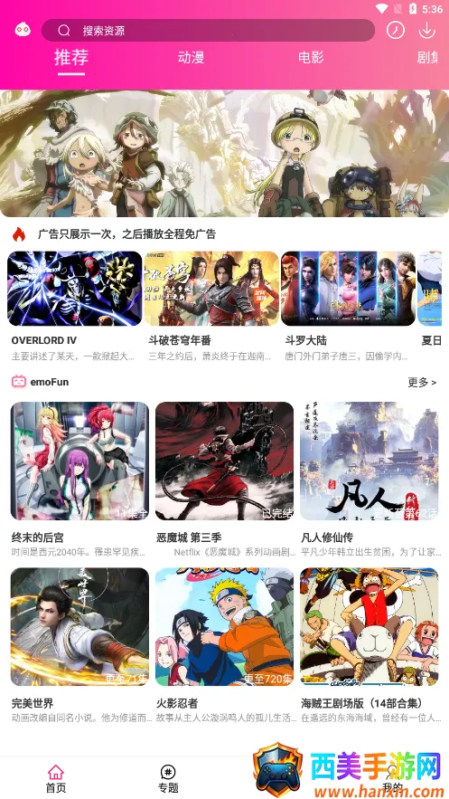 如果你是个动漫爱好者,那emofun绝对是你的追番神器!它能提供海量正版动漫资源,新番老番一网打尽,冷门番也能轻松找到。1080P高清画质无广告,看番体验超爽。还有离线下载功能,没网络也能提前缓存,地铁山区都能嗨看不停。社区互动有爱,弹幕吐槽、同好交流,追番不孤单。