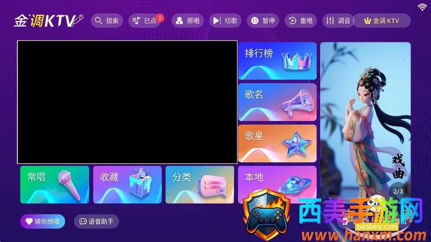 金调ktv点歌系统是专为家庭娱乐设计的K歌应用。它拥有高清播放,能还原歌曲原声,免激活码,打开手机版即可直接免费使用,无需登录。其歌曲资源丰富,设备适配性强,可快速连接家用电视和音响。操作没门槛,适合多人同台嗨唱。