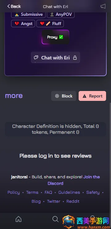 Janitor最新手机版主打自由轻松,无繁杂设计。汇聚多样原创AI角色,角色来源自由,有背景性格逻辑。对话自然情绪化,通过指令可切换中文,能推进情节,给用户陪伴与参与感。