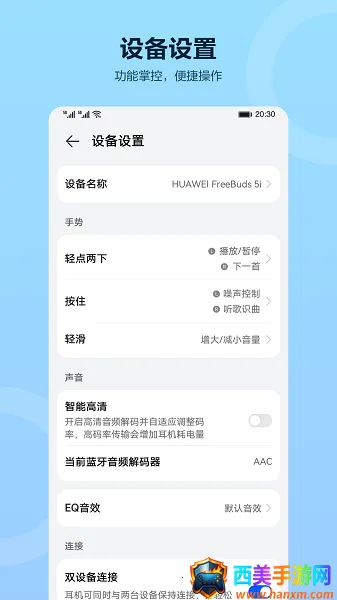 华为智慧音频App是一款超实用的软件。它能帮你轻松发现、连接和管理华为耳机,还能对耳机进行各种便捷设置。比如在手机上就能自由调节耳机的降噪音效、控制手势等,满足你的个性化需求。它支持多种华为耳机型号,像FreeBuds 5i等。有了它,你可以轻松切换耳机连接的设备,还能开启音频连接自动切换。在音效设置方面,能根据喜好选择各种音效,甚至自定义EQ。而且通过它还能获取华为耳机的用户指南和产品服务,快速解决使用问题。要是耳机固件有更新,也能在App里及时搞定。另外,它还支持多设备连接,包括手机和平板等。不管是日常听音乐,还是管理耳机,华为智慧音频App都能给你带来极大的便利,让你轻松享受音频世界。目前没有消息表明它改了名字哦。