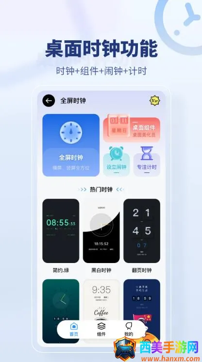 它的表盘样式能换多种显示风格,背景皮肤也能更换背景图片。专注模式开启后进入倒计时,还能查看每日专注时间及之前的专注时长。内置多种白噪音,像雨声、海浪声、夜虫声等,助你更好进入专注状态。闹钟设置方便,可添加多个,自定义音乐和重复日期。还有语音控制闹钟停止功能,超贴心。要是桌面时间不见了,重新添加到桌面就行,记得允许它开机启动和后台运行,并加入清理和加速软件的白名单哦。