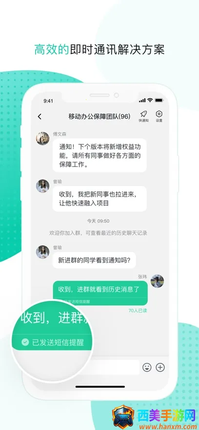 中移移动办公优势显著。它能满足各行业移动办公需求,涵盖丰富营销活动、权益套餐等。支持移动端与桌面端同步,随时随地开展工作。团队云盘等基本办公需求已满足,还有更多应用在发现模块。社交空间无企业界限,职场沟通更顺畅。个人待办与团队协同完美结合,能将聊天消息与邮件转为待办。发送消息可查看已读未读状态,群成员有特别标识,提升群聊沟通效率,让办公更高效智能。