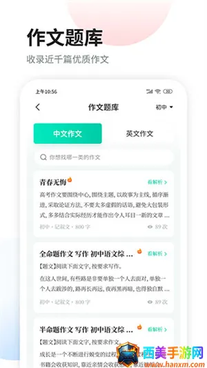 2. 海量题库:涵盖小学到高中各文体作文题库,提供丰富的练习资源,满足全学段学生需求。