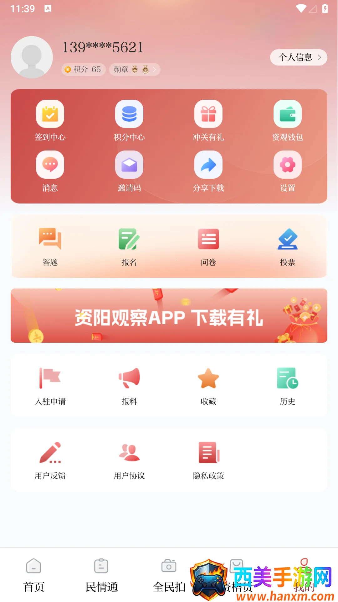 资阳观察这名字听起来挺不错呀,挺吉利的呢!它是一款超棒的生活服务软件,专为四川资阳地区市民打造。功能超丰富,能让你轻松获取海量热点新闻,国内外时事一网打尽,足不出户知天下事。还有政务直播服务,帮你解读政策、维护权益。软件使用起来也很方便,首页新闻分类明确,民情通专区能一站式便民服务,全民拍模块可实时捕捉本地动态,本地生活模块能在线下单购物。它还有积分商城,积分能换超值商品;个人兴趣圈可随心加入享爱好;资讯推荐节省找内容时间;实用查询工具涵盖汽车违章、公积金和天气等。另外,快速报警求助、信息全面、置顶功能贴心,定制化推送、智能推送、精准搜索都很实用,能提升生活质量,带来诸多便利,名字自然也是相当不错啦!