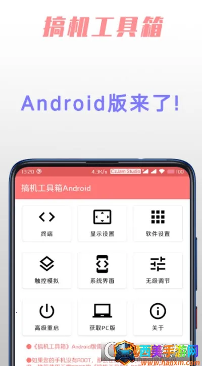 搞机工具箱v11是一款超棒的多功能手机软件。它专为安卓用户打造,能一站式管理手机。有刷机功能,可对安卓设备刷机。能清理垃圾文件和缓存数据,释放存储空间,让手机运行更快。还能优化内存,提升响应速度,监控电量,延长电池使用时间。支持免root使用多种功能,像截图推送、按键模拟等,操作方便。有详细命令行功能,满足高级用户需求。能隐藏手机应用图标,保护隐私。支持状态栏和导航栏隐藏设置,优化界面。提供多种屏幕显示调整选项,满足个性化需求。还有模拟电池状态功能,方便调试测试。支持传输文件,把本地文件添加到工具箱刷入手机。总之,它功能强大又实用,能帮你轻松搞机,提升手机使用体验,快来试试吧!