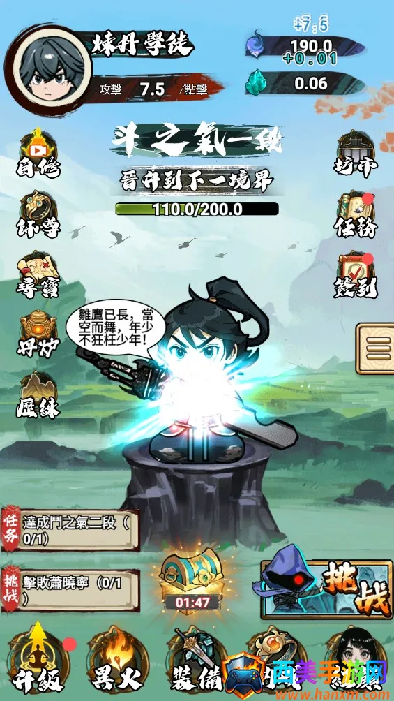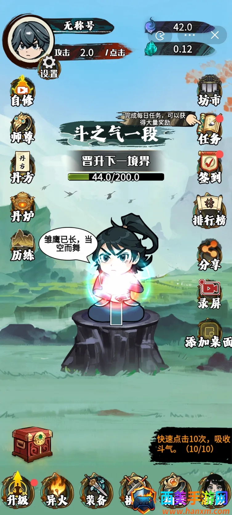 斗破七界是一款模拟修仙类游戏,玩家穿越到斗气大陆开启修炼冒险之路。其采用漫画风格打造,简易玩法轻松上手,还有诸多有趣挑战。玩家能通过完成主线书写全新修仙故事。游戏亮点多多,有多样角色互动,勿轻视敌友纷争,好友也可能成为对手;是功能丰富的放置游戏,可自由修仙培养自己的神仙;能在各处探索宝藏获取珍贵资源助修成正果;创新非线性玩法带来丰富多变的修仙体验。新手指引明确,可在任务中提升等级获取装备,在探险中消灭怪物、收集宝材、探索剧情,收集材料和独特道具。想体验修仙游戏的不妨来试试这款斗破七界。