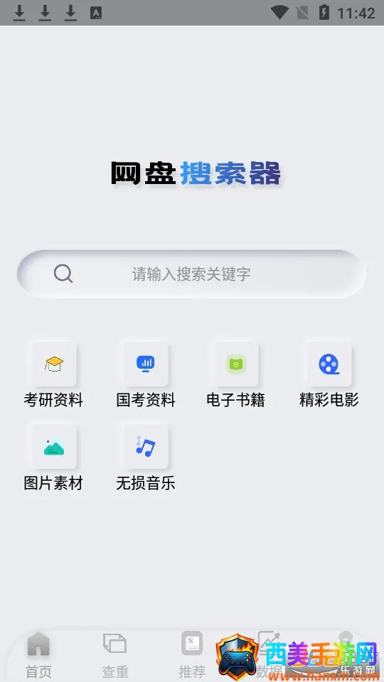 网盘搜索器能帮你轻松搞定各类网盘资源搜索。它功能超强大,输入关键词并选好网盘类型就能精准搜索。不管是无损音乐、电影电视,还是书籍资料等,统统都能快速找到。它还会检测链接有效性,筛除失效链接。有热门搜索参考,像考试资料、电影视频、PS 教程等都能快捷搜。搜索到的资源能直接用内外浏览器打开。而且所有资源免费下载,无需密码。界面清爽没广告,打开就能快速搜。它集合了多个网盘资源,像阿里盘、盘搜索、小白盘等。多线程下载节省时间,操作简单便捷,还有智能化辅助 AI 帮你快速精准定位资源,检测有效性和安全性,甚至支持预览,边下载边看。有了它,找网盘资源不再愁,满足你各种资源需求,赶紧来试试吧。