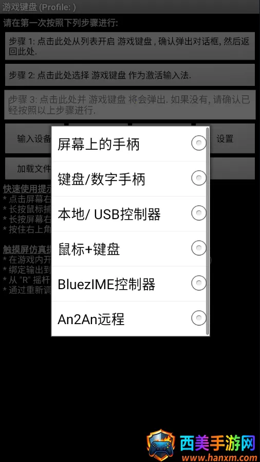 虚拟键盘手机版是一款为安卓系统设计的虚拟游戏键盘软件,在虚拟键盘手机版app中,用户们可以在不支持外接手柄的移动游戏中自定义按键布局,将屏幕触控操作转换为更精准的虚拟按键输入。该软件支持多种主流游戏的自定义配置,并提供灵敏度调节设置等高级选项,帮助玩家在射击等各类游戏中获得更流畅的操作体验。无论是想提升游戏表现还是追求个性化操作方式,都可以通过这款软件实现您的需求,一起来下载虚拟键盘手机版试试吧!软件功能1虚拟游戏键盘全速运行大多数游戏2定制屏幕上的键盘3支持自定义键盘4支持大多数的GBA游戏5支持多种存档方式6支持屏幕截图7支持轨迹球8支持虚拟键盘9支持按键自定义。虚拟键盘手机版怎么调出来?1打开虚拟键盘手机版,上面标明了快速使用提示和触摸屏仿真提示2点击输入设备,可以选择接入的设备3点击使用模式,你可以选择模拟的操作模式4点击设置,你还可以进行更多配置。设置教程1打开软件,点击步骤1,在弹出的键盘设置中,找到游戏键盘,在后面打钩,然后返回上级界面。2长按步骤2,会弹出来一个输入法选择的窗口,进去选择游戏键盘。该项是将手机输入法切换为游戏按键模式。3点击步骤3,测试前两步是否正确,看是否有虚拟的手柄出现,如果出现则表明设置成功,否则检查前两步是否正确和手机ROOT权限问题。4点击步骤4进行进一步的设置:a在最下面找到TouchscreenMode,勾选上。这个选项是用来开启物理按键映射虚拟按键。下面一行小字提示需要重启,将软件重启后继续。b找到布局编辑,点击进去,在布局编辑模式和启用自定义布局后打上钩。打开这个选项能够自行调整要映射的虚拟手柄的位置。c找到热键,在后面打钩。这个选项是使用音量增大键作为调出虚拟键盘的快捷键。d找到使用蓝牙外接速度加速,在后面打钩。e找到启动硬键,在后面打钩。该选项是用来开启物理按键到虚拟按键的映射。勾选后下面的硬件映射变为可点击的,点进去设置物理按键到虚拟按键的自定义映射。比如:点击映射1,然后按下手柄按键的上键,在下拉列表中选择需映射的D-padUp,设置成功后映射1下方显示D-padUpD-padUp。再点击映射2,设置下一个映射,总计10个映射。请按下表设置按键映射:注:Mode键是键值切换键,不参与按键映射。f找到返回关键操作,点击进去,在弹出的菜单最下方找到SwapGamepadKeyboard,选定此选项。g到此基本的设置已经完毕,我们以安卓版武士2:复仇进行示范。进入游戏后,按下音量增大按键,调出虚拟键盘,拖动虚拟键盘的按钮,将软件**方向键图标**拖放覆盖到游戏中的圆形虚拟方向键中间,此游戏有3个虚拟功能键,可根据使用习惯,将手柄ABXYSelectStart这6个按键中的任意三个拖放覆盖到游戏的3个虚拟按键上,再按下手机的返回键退出模拟软件,即可使用!可根据每个游戏虚拟按键位置的不同自行拖放覆盖。常见问题1如何在目标应用程序例如游戏中调出游戏键盘?根据设备ROM和目标应用程序,有许多不同的方法可以调用软键盘,例如:一些应用程序内置了调用软键盘的选项部分设备支持长按菜单键调出软键盘GameKeyboard还提供了其他方法,以防上述方法无法使用:切换到GameKeyboardLauncher,点击退出后调出键盘按钮,然后切换回来打开设置-使用热键然后使用Vol.UpMouseMiddle作为热键启用设置-使用热点,然后点击热点屏幕一角2如何在屏幕游戏手柄和QWERTY键盘之间切换?方法1:将BackKeyAction设置为ShowActionMenu或SwapGamepadKeyboard,然后长按BackKey。方法2:启用向左向右滑动操作,然后在虚拟游戏手柄上执行水平滑动。方法3:使用ButtonMappingsHardkeyMappings绑定一个虚拟物理按键到SSwapGamepadKeyboard,然后点击对应的按键。方法4:从GameKeyboardLauncher启用使用模式-显示Qwerty,然后它将默认显示Qwerty而不是Gamepad。软件亮点1在游戏内开启编辑模式自定义2绑定输入到小键盘按键滑动3从R摇杆图标,更改事业镜头选自己所喜爱的4通过重新调整图标大小调整拖拽滑动范围。软件特色1以便用户可以使用物理控制器玩纯触摸游戏,只需在软件内启用设置触摸屏模式即可使用。2使设置的按键完成对应游戏操作,使得用户可以更加灵活地操作游戏。但并非所有应用程序都兼容。3支持连接外部的蓝牙键盘设备,还内置了各种游戏的手柄,让每个玩家能在手机上轻松操作心仪的游戏。软件评测虚拟键盘手机版是一款实用便捷的游戏辅助工具,在虚拟键盘手机版app中,用户们能够根据个人习惯灵活调整按键位置和大小。如果你正在寻找一款能显著改善手游操作体验的虚拟键盘应用,这款软件无疑是值得尝试的优秀选择!