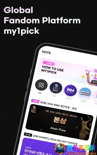 my1pick安卓版是全球KPOP粉丝平台,可投票应援,有机会得演唱会等门票及签名周边。还能获广告支持,通过互动社区分享交流,界面精心优化,支持多语言,功能丰富,助力粉丝沉浸式追星。