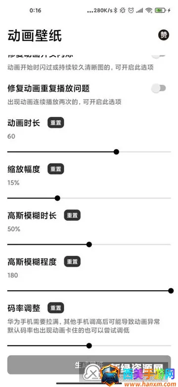 2. 操作简单便捷,一键设置使用,还有三种壁纸动画曲线模式,可自由调节动画参数,如时长、缩放幅度、模糊程度等,还能实时预览效果,所见即所得。