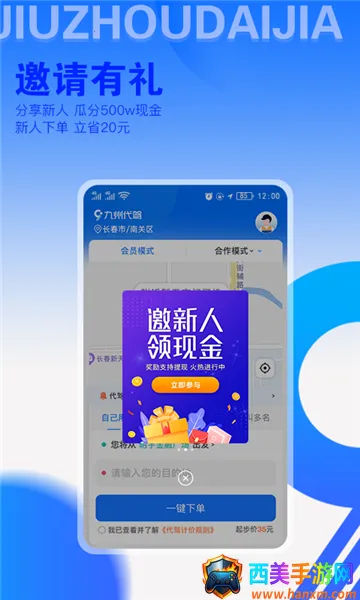 九州代驾2025官方正版是一款出行代驾平台,由吉林省盛世九州科技有限公司打造。提供24小时快捷专业服务,平均6分钟接驾,20分钟内等待不收费。支持多方式下单、在线支付等,保障用户和爱车安全。