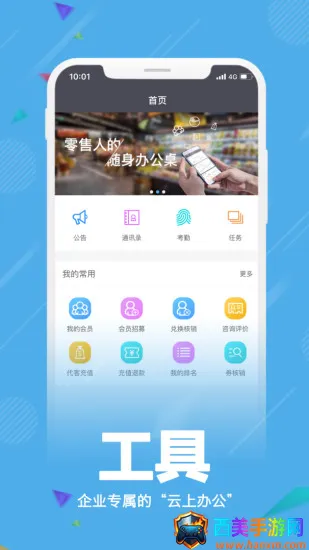 零售办公平台为传统零售提供全渠道服务能力,由创纪云科技研发。作为商户工作平台,提供通用及定制服务,涵盖办公工具、营销工具、门店管理、日常作业四部分。办公工具含考勤、公告等;营销工具包括会员招募等;门店管理有巡店、报表等;日常作业含拣货、送货等。其优势众多,能发布动态通知,接收员工报表,自动汇总营销数据,在线编辑公告,随时掌握门店信息,查看员工考勤,减少人力物力,提高管理水平,让商户更好触达用户,提升购物体验。