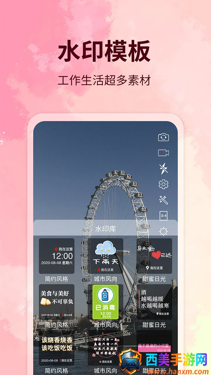 2. 智能水印模板:地点、时间等智能水印自动添加,轻松便捷。