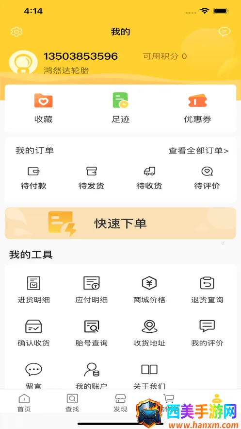 鸿然达轮胎app是一款超实用的轮胎采购平台。它能帮你轻松解决轮胎采购的各种问题。登录方法很简单,先打开软件,阅读初始页面的软件使用协议并同意,勾选用户协议,进入登录界面后,在对应输入框填手机号和密码就能完成验证登录。如果没有账号,在登录页面点击注册按提示操作即可。它功能强大,有精准搜索功能,能通过品牌、规格等关键词快速找到想要的轮胎产品。还能实时查看轮胎价格变动和优惠活动,方便比价决策。依据你的购买和浏览行为,会智能推荐相关轮胎。注册成会员后能享受积分兑换等专属优惠特权。另外,能展示轮胎详细品牌信息,支持精准搜索,随时查看物流配送信息,操作界面简洁明了,不管是门店批量采购还是个人购买都很容易上手。