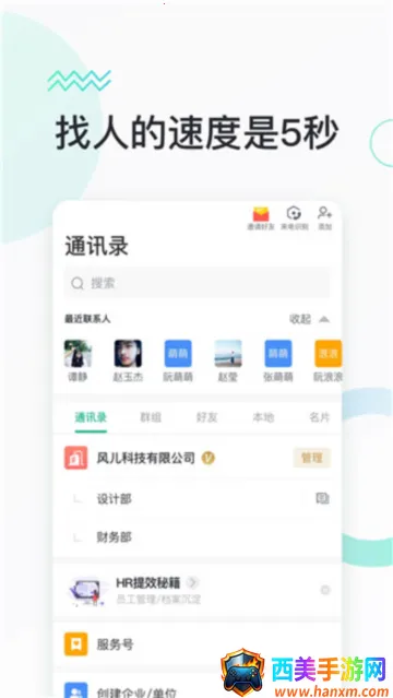 高效沟通找人快:无需重复添加通讯录,5 秒就能快速找到同事,方便快捷。