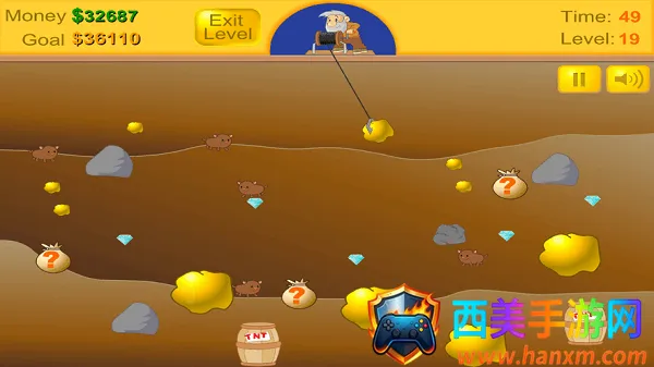 操作极简,单指点击就能完成交互,新手能快速掌握。资源分布按概率算法,大小金块比例不同,充满决策挑战。障碍设置增添策略深度,岩石要多次撞击破碎,老鼠会偷物品,得预判调整策略。怀旧元素完整保留,从界面到音效都复刻经典,能唤起老玩家的原汁原味情感体验,让人沉浸在往日的游戏情怀之中。