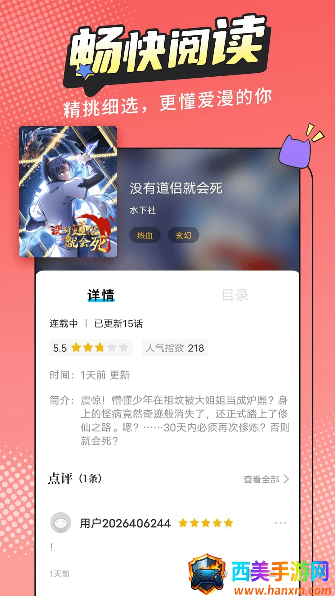 1、海量资源随心看:拥有丰富漫画资源,涵盖多种题材分类,满足不同漫迷需求,上万部作品汇聚,让你尽情畅享漫画世界。