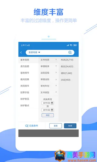 案例储存丰富,涵盖民事、刑事、商事等各类案例。有法律专家进行案例评析,分享点评,助您轻松理解。案例随时间不断增加新内容,如新增至839个案由及7400万篇民事文书。采用主流框架构建界面,使用无缝切换。具备精准检索功能,能精准提供法律内容与案例裁判内容。拥有丰富过滤维度,操作简单,交叉检索更准确,海量真实数据每日更新。
