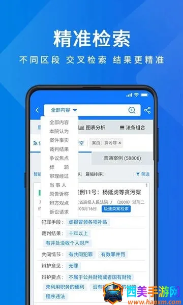 3. 精准检索:拥有精准检索功能,支持任意关键字搜索,能精准提供法律内容和案例裁判内容,采用交叉检索方法,让检索更准确。