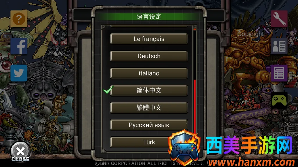 合金弹头进攻是SNK开发的策略射击游戏,以联军对抗魔登军团为主线。玩家能收集培养角色武器,闯关挑战首领。有支援系统、多种任务模式,支持联机对战与工会协作,操作简易,画面复古,乐趣十足。
