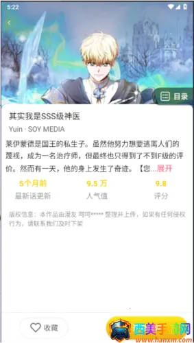小丸子漫画官方正版是一款超棒的漫画阅读软件!它功能超丰富,能解决咱找漫画和畅快阅读的问题。有海量正版漫画,各种类型应有尽有,从热血少年漫到温馨治愈系,想看的都能找到。画质超高清,阅读流畅不卡顿,还有多种阅读模式可选。支持离线下载,没网也能随时看。能自动匹配并推送感兴趣的漫画,还能在社区和其他漫友交流心得。注册登录方便,登录后就能解锁全部功能。每日连载不间断,新书章节即时上架,还有书架更新提醒。界面简洁直观,操作便捷,没广告打扰,能专心看漫画。不管是想追更热门漫画,还是找小众佳作,小丸子漫画官方正版都能满足,赶紧来体验吧!