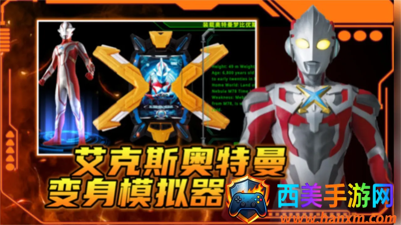 艾克斯奥特曼变身模拟器是休闲游戏,用DXUltraX扫描仪读取奥特英雄卡片,含机械奥特卡等。提供英雄和怪兽资料,能体验奥特装甲典型攻击与终结技,选英雄、点按钮即可,还能选择是否装备装甲。