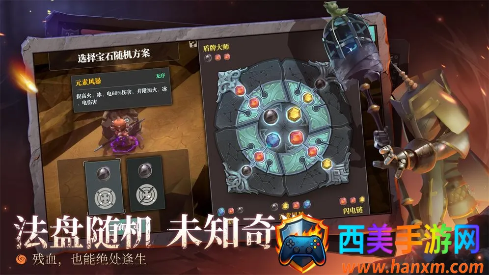 3. **随机与奇遇**:每次跳下深渊都是一次全新的冒险,除了会遇到不同怪物以外,你还可以通过法盘祭坛随机获得宝石,并通过不同的宝石搭配,获得超过一百种神奇的Buff,甚至可以激活身上的魔物血统,变身恐惧魔王。根据法盘获得的能力制定作战策略,是通关的关键。