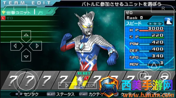 《奥特曼全明星编年史》是一款超棒的奥特曼格斗游戏。在这游戏里,你能收集解锁各种喜欢的奥特曼,培养提升它们的战斗能力。玩法上,先选出击的奥特曼,按START进入地图选初始位置,再START就正式开始。界面上有时间条、行动顺序等。行动指令包括移动、攻击、必杀技能、防御、待机。地图上的光点是奥特魂,吃掉能加成,比如黄色提升能力值,蓝色回复HP和SP,绿色回复时间条。关卡胜利条件多样,有敌全灭,也有干掉敌方LEADER或坚持到时间条走完等。游戏还有额外模式,能体验不同舞台,满足条件还能让部分怪兽成为同伴。画廊模式可欣赏奥特曼图鉴、怪兽图鉴和故事介绍。这游戏能让你重温奥特曼经典,享受刺激的战斗冒险,体验当奥特曼打怪兽的快感,快来试试吧!