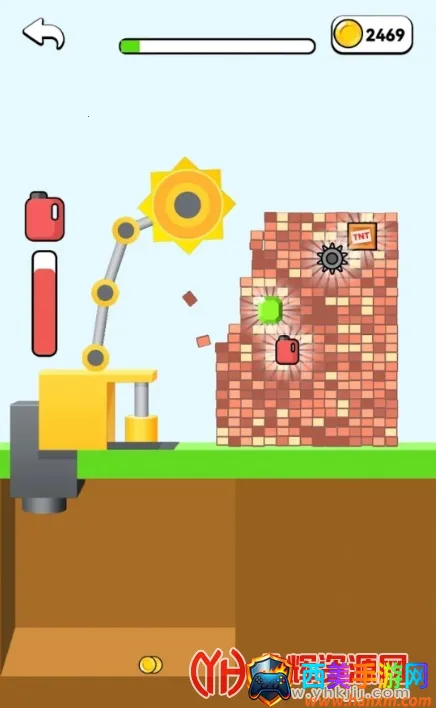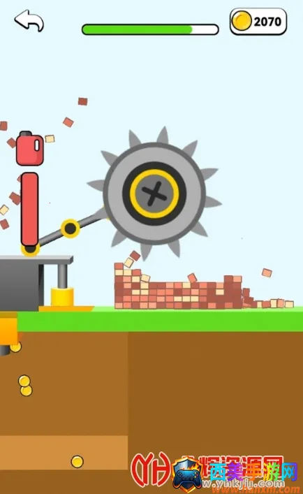 4. 操作简单,撞碎物品后可拿到奖励,还能升级钩子,使其钩得更远且破坏力更强,拆除砖块越多奖励越丰厚。