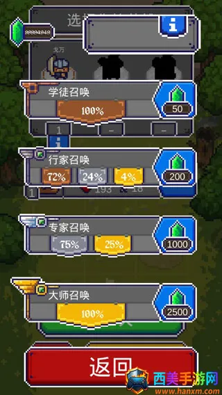(1)英雄可进行召唤,召唤分为学徒召唤,行家召唤,专家召唤和大师召唤四种,每一种所召唤的英雄都强度不一,其强度都是逐级递增的,因为花费了更多的钻石。