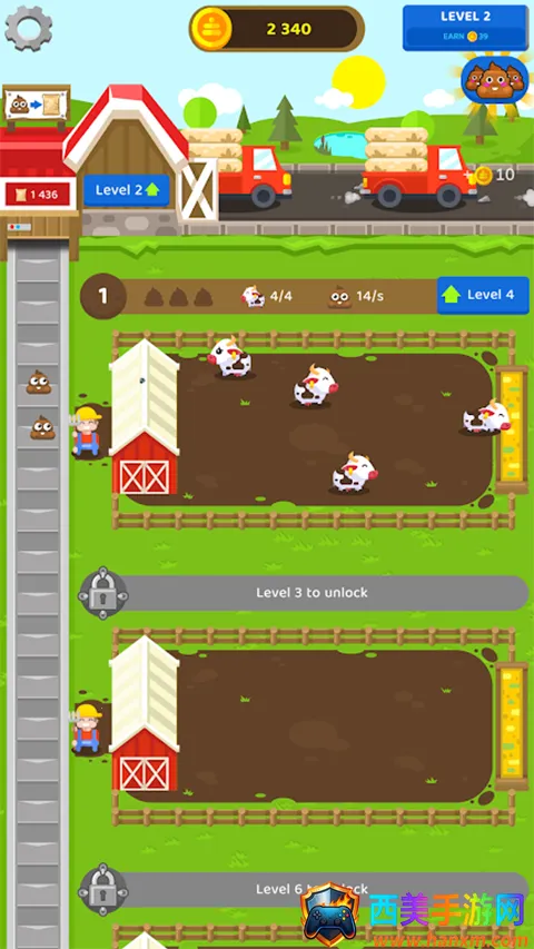 3 丰富的经验和等级系统,满足条件即可解锁新的动物农场,并体验不同的经营乐趣。