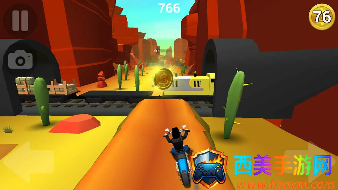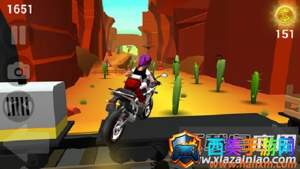 2. 以摩托车竞速为核心玩法,玩家能充分感受驾驶摩托的自由与快感,沿途收集硬币解锁独特车辆与个性服装。