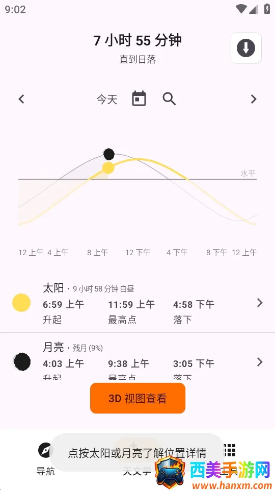 6、点按太阳或者月亮可了解位置详情。