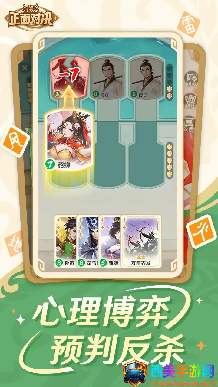 3. 智力博弈乐趣:借助角色部署、锦囊妙用以及随机天命事件,体验“我预判了你的预判”的高智商博弈,感受心理对决的魅力。